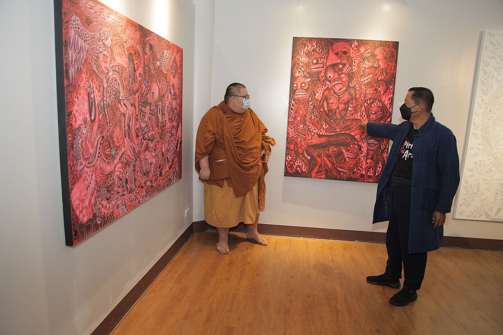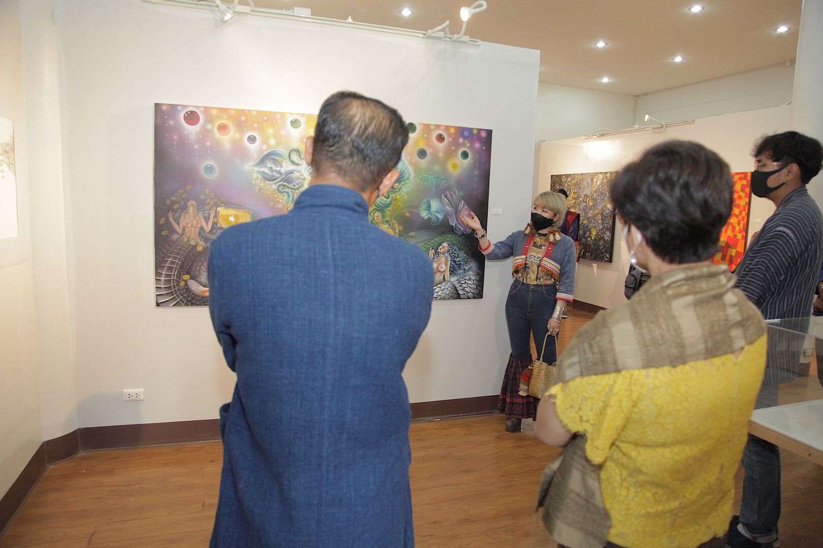 เมื่อวันศุกร์ที่ 15 ตุลาคม 2564 ศาสตรเมธี ดร.เฉลิมชัย โฆษิตพิพัฒน์ ศิลปินแห่งชาติ สาขาทัศนศิลป์ (จิตรกรรม) ได้ให้เกียรติเยี่ยมชมนิทรรศการแสดงผลงานสร้างสรรค์ศิลปกรรม ของผู้เรียนหลักสูตรระยะสั้น สาขาวิชาพุทธศิลปกรรม รุ่นที่ 1 โดย สถาบันพุทธศิลปกรรมแห่งมหาวิทยาลัยแม่ฟ้าหลวง ณ ห้องจัดนิทรรศการหมุนเวียน พิพิธภัณฑ์อารยธรรมลุ่มน้ำโขง มฟล. โดยมี รศ.ดร.ชยาพร วัฒนศิริ อธิการบดี มฟล. พร้อมด้วยอาจารย์ผู้สอนของหลักสูตรให้การต้อนรับ ทั้งนี้ ศาสตรเมธี ดร.เฉลิมชัย โฆษิตพิพัฒน์ ได้ชื่นชมผลงานศิลปกรรมที่ผู้เรียนได้นำเสนอแนวความคิดในการผลิตผลงานชิ้นต่างๆ และยังให้เกียรติวิพากษ์ผลงานของผู้เรียนในหลากหลายมิติ เพื่อให้เกิดการพัฒนาและต่อยอดไปสู่การสร้างสรรค์ผลงานศิลปกรรมที่ยอดเยี่ยมยิ่งขึ้นไป