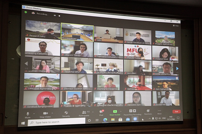 เมื่อวันที่ 9 พฤศจิกายน 2564 ส่วนนโยบายและแผน มหาวิทยาลัยแม่ฟ้าหลวง (มฟล.) จัดการประชุมถ่ายทอดตัวชี้วัดการดำเนินงานภายใต้แผนพัฒนามหาวิทยาลัยแม่ฟ้าหลวง ฉบับที่ 5 (2565-2569) สู่หน่วยงาน โดยมี รศ.ดร.ชยาพร วัฒนศิริ อธิการบดี เป็นประธานในการประชุม พร้อมด้วย อ.ดร.พนม วัญญยอง รองอธิการบดี โดยมีคณะผู้บริหารและผู้เกี่ยวข้องเข้าร่วมการประชุม ณ ห้องประชุมดอยตุง อาคารวันชัย ศิริชนะ และผ่านโปรแกรม Zoom Meeting จำนวนกว่า 150 คน
