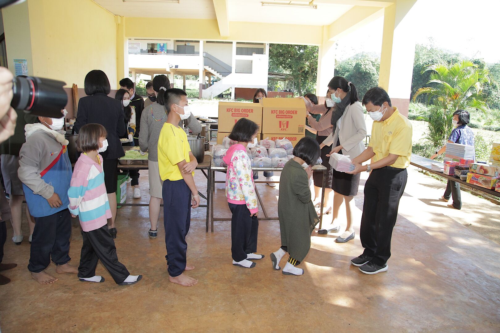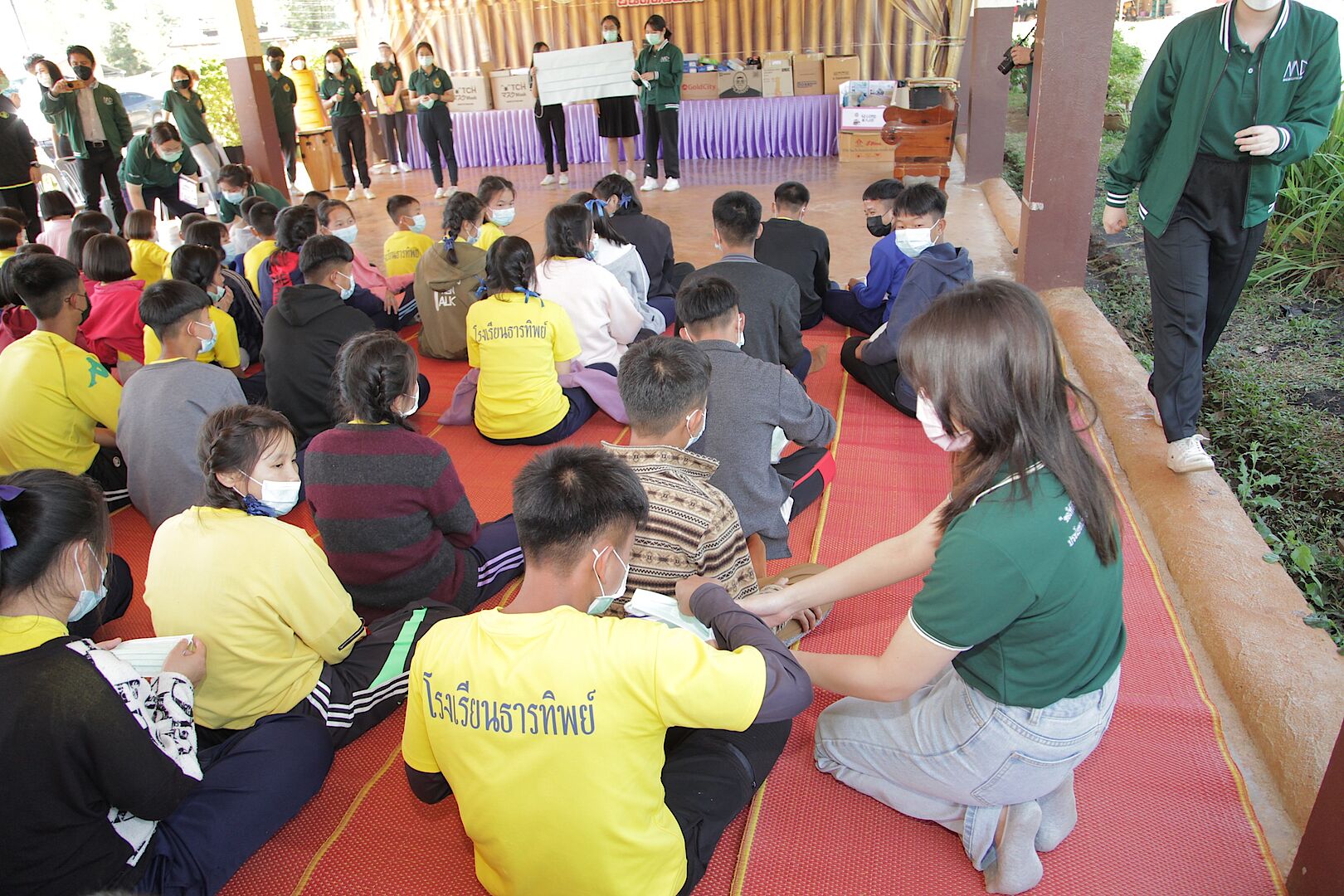 สำหรับในช่วงบ่าย เป็นกิจกรรมการแสดงละครให้ความรู้เรื่องการป้องกันการติดเชื้อไวรัสโคโรนา COVID-19 และแนะนำการใช้หน้ากากอนามัย โดยนักศึกษาแพทย์ มฟล. นอกจากนี้ยังมีการเล่นเกมและตอบคำถามชิงรางวัล โดยแบ่งนักเรียนออกเป็น 2 กลุ่ม โดยกลุ่มที่ 1 เป็นนักเรียนระดับชั้นประถมศึกษาชั้นปีที่ 1 - 5 จำนวน 41 คน กลุ่มที่ 2 นักเรียนระดับชั้นประถมศึกษาปีที่ 6 - ชั้นมัธยมศึกษาปีที่ 3 จำนวน 44 คน ในช่วงท้ายได้มีการมอบของรางวัลและถ่ายภาพหมู่ เป็นอันเสร็จสิ้นกิจกรรมในครั้งนี้