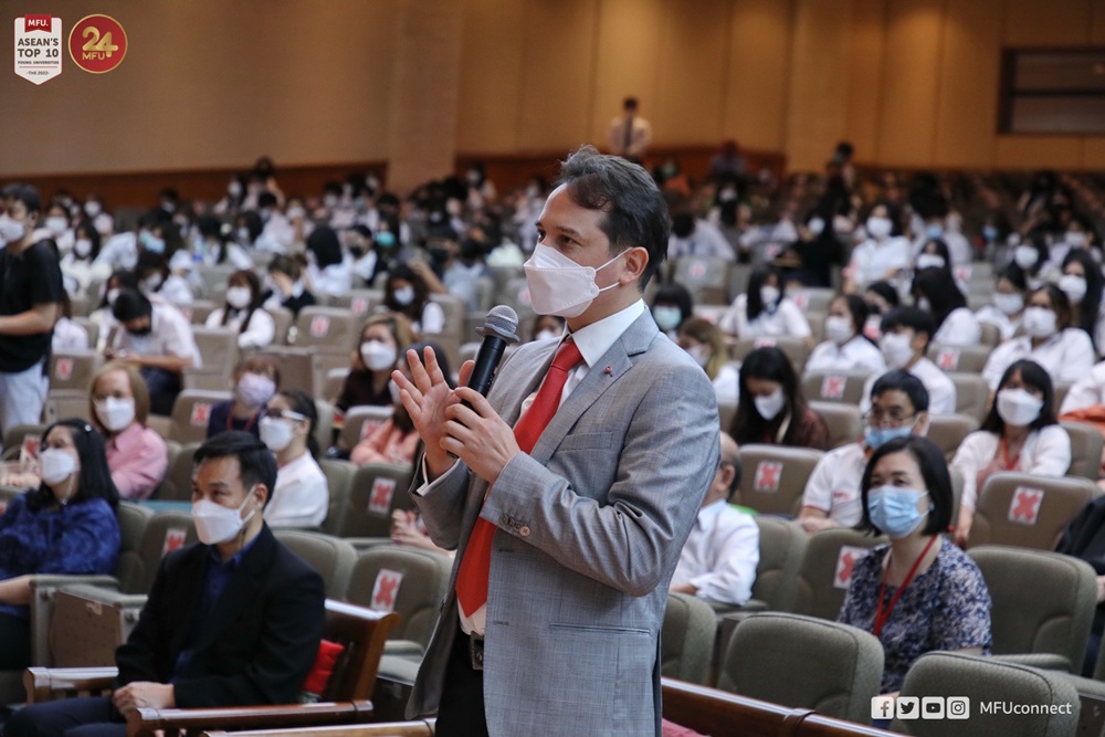 นายกสภามหาวิทยาลัยแม่ฟ้าหลวง กล่าวตอนหนึ่งในการการปาฐกถาพิเศษถึงประวัติศาสตร์บางส่วนของจีน และความสัมพันธ์ระหว่างไทย-จีน และมหาวิทยาลัยแม่ฟ้าหลวงกับความสัมพันธ์ที่มีต่อจีน ที่มาของการเริ่มต้นจนถึงการเกิดขึ้นของสถาบันภาษาและวัฒนธรรมจีนในมหาวิทยาลัยแม่ฟ้าหลวงและความร่วมมือ การสนับสนุนซึ่งกันและกันระหว่างมหาวิทยาลัยกับจีนที่มีมาอย่างต่อเนื่องยาวนาน ทั้งยังได้ระบุว่าดีใจที่นักศึกษาเข้ามาฟังกันจำนวนมาก ขอให้ฟังเป็นแนวคิดว่าอนาคตเราจะเดินไปอย่างไรกับชาติมหาอำนาจนี้