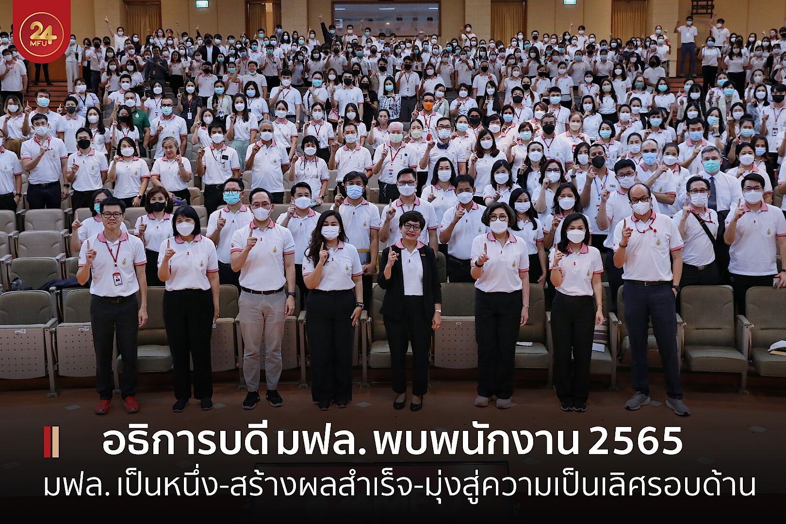 มหาวิทยาลัยฟ้าหลวง (มฟล.) โดย ส่วนประชาสัมพันธ์ และ ส่วนการเจ้าหน้าที่ จัดกิจกรรม อธิการบดีพบพนักงาน (Meet the President) ประจำปี 2565 เมื่อวันพุธที่ 30 พฤศจิกายน 2565 เวลา 15.00-16.00 น. ณ หอประชุมสมเด็จย่า (C4) โดย รองศาสตราจารย์ ดร.ชยาพร วัฒนศิริ อธิการบดีมหาวิทยาลัยแม่ฟ้าหลวง ได้ใช้โอกาสนี้พบปะพนักงานเป็นประจำทุกปี เพื่อชี้แจงความก้าวหน้าของมหาวิทยาลัย การเป็นมหาวิทยาลัยอันดับ 1 ของไทย 4 ปีซ้อนจากการจัดอันดับของ THE นโยบายสำคัญในอนาคต โดยย้ำถึงผลสำเร็จของการดำเนินงานรอบด้าน เป็นผลมาจากความร่วมมือร่วมใจของชาวมหาวิทยาลัยทุกภาคส่วน รวมถึงได้บอกเล่าถึงนโยบายในการส่งเสริมคุณภาพชีวิตและสวัสดิการด้านต่าง ๆ เพื่อให้พนักงานสามารถทำงานได้อย่างมีประสิทธิภาพและใช้ชีวิตในมหาวิทยาลัยได้อย่างมีความสุข โดยมีคณะผู้บริหาร คณาจารย์ และพนักงานสายปฏิบัติการเข้าร่วมกิจกรรมกว่า 800 คน