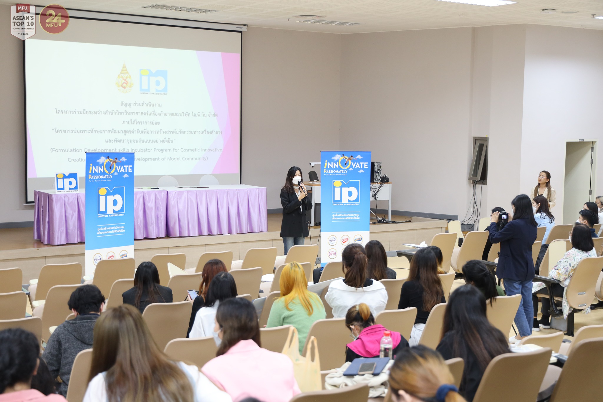 การพัฒนาและขับเคลื่อนนวัตกรรมที่สร้างสรรค์หรือแนวความคิดใหม่ที่มีโอกาสเติบโตอย่างก้าวกระโดดและผลักดันจนเป็นแบบเผนธุรกิจที่ทำได้จริงนั้น จำเป็นจะต้องได้รับความร่วมมือจากหลากหลายภาคส่วนที่มีจุดประสงค์เดียวกัน ดังนั้น โปรแกรมร่วมมือระหว่าง สำนักวิชาวิทยาศาสตร์เครื่องสำอาง มฟล. และ บริษัท ไอ.พี.วัน จำกัด จัดขึ้นเพื่อการวิจัยและพัฒนานวัตกรรมขับเคลื่อนผลิตภัณฑ์เครื่องสำอางจนเป็นแบบแผนธุรกิจที่ทำได้จริงจึงเป็นโครงการที่เกิดขึ้นเพื่อส่งเสริมพันธกิจดังกล่าว ภายใต้ "โครงการบ่มเพาะทักษะการพัฒนาสูตรตำรับเพื่อการสร้างสรรค์นวัตกรรมทางเครื่องสำอางและพัฒนาชุมชนต้นแบบอย่างยั่งยืน(Formulation Development skills Incubator Program for Cosmetic Innovative Creation and Sustainable Development of Model Community)" โดยโปแกรมจะครอบคลุม 2 แนวทางในการพัฒนานวัตกรรม ได้แก่