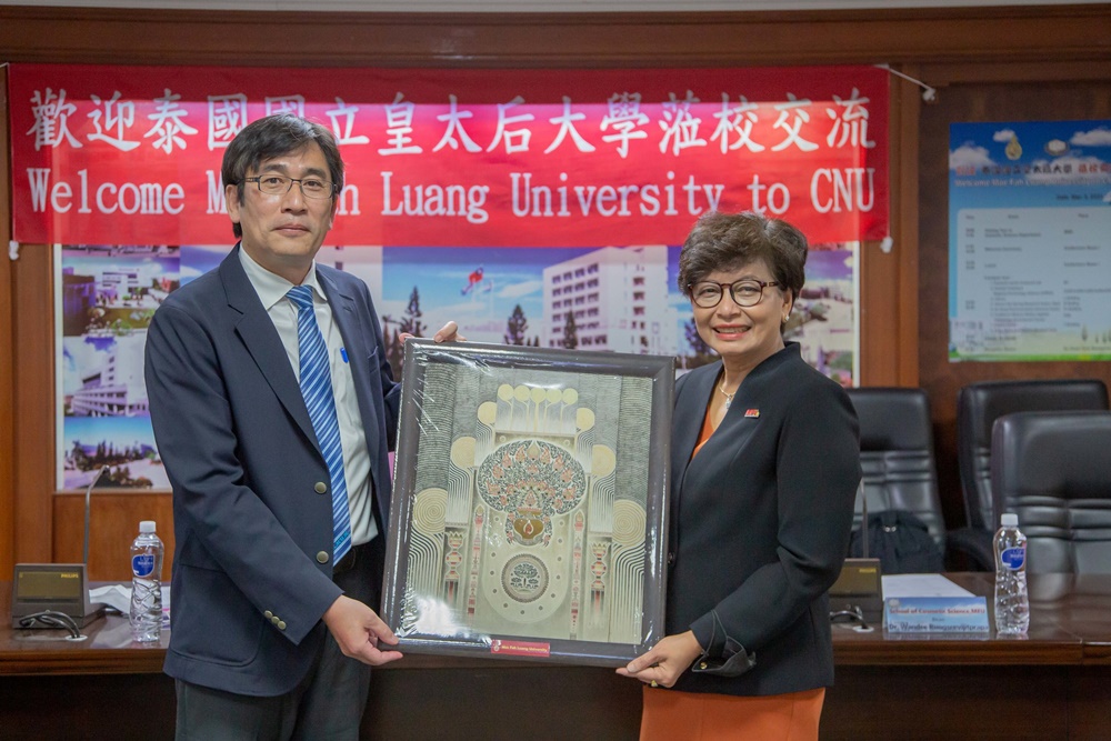 คณะผู้บริหาร Chia Nan University of Pharmacy & Science (CNU) ที่ให้การต้อนรับ ได้แก่ Prof. Dr. Jui-Hsiang Hung, Dean of Academic Affairs Office Assoc. Prof. Dr. Cecilia I.C. Lin, Dean of Office of International and Cross-Strait Affairs, Prof. Dr. Liang, Jia-Hua, Chief of Department of Cosmetic Science, Assist. Prof. Dr. Yuan-Po Lee, Department of Cosmetic Science, Assoc. Prof. Dr. Wei-Chao Lin, Department of Cosmetic Science