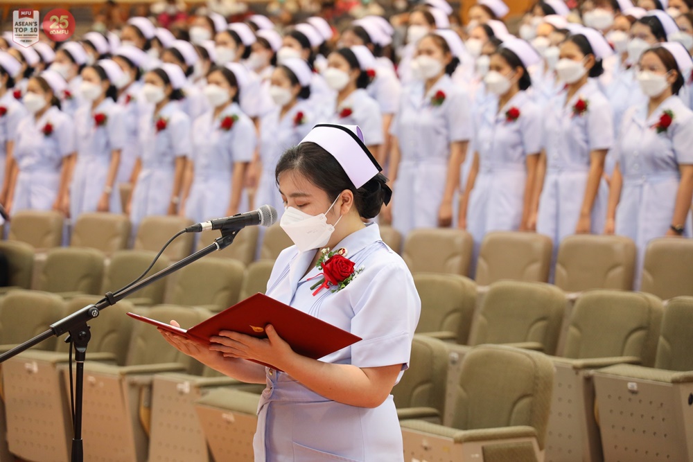 มหาวิทยาลัยแม่ฟ้าหลวง (มฟล.) โดยสำนักวิชาพยาบาลศาสตร์ จัดพิธีประกาศการสำเร็จการศึกษาของนักศึกษาหลักสูตรพยาบาลศาสตรบัณฑิต รุ่นที่ 13 ประจำปีการศึกษา 2565 เมื่อวันที่ 25 พฤษภาคม 2566 ที่หอประชุมสมเด็จย่า มหาวิทยาลัยแม่ฟ้าหลวง เพื่อแสดงความยินดีแก่ผู้สำเร็จการศึกษาก่อนเตรียมก้าวสู่วิชาชีพต่อไป มีผู้สำเร็จการศึกษาทั้งสิ้น 122 คน ในพิธีการมี ผู้ช่วยศาสตราจารย์ ดร. มัชฌิมา นราดิศร รักษาการแทนอธิการบดี ให้ปัจฉิมโอวาทแก่ผู้สำเร็จการศึกษา และ ผู้ช่วยศาสตราจารย์ ดร.ชมพูนุช โสภาจารีย์ คณบดีสำนักวิชาพยาบาลศาสตร์ มอบหมวกพยาบาลและเข็มวิทยฐานะและกล่าวแสดงความยินดี ท่ามกลางผู้บริหาร คณาจารย์ ร่วมแสดงความยินดี