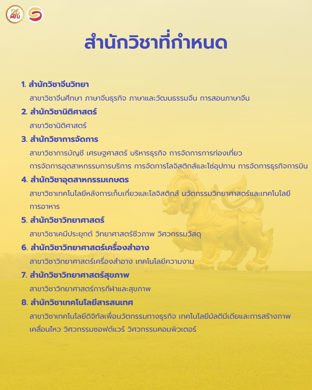 7. เป็นนักศึกษาที่กําลังศึกษาอยู่ในสํานักวิชาดังต่อไปนี้