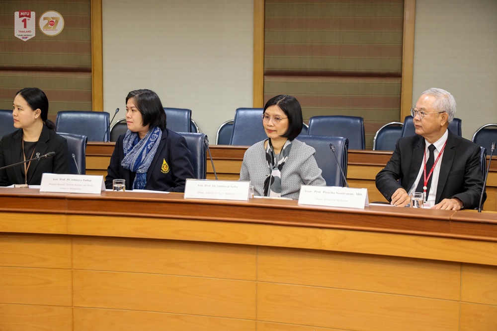การเดินทางเยือนครั้งนี้เกิดขึ้นภายใต้บันทึกความเข้าใจ (MOU) ที่ลงนามร่วมกันเมื่อวันที่ 20 กุมภาพันธ์ 2568 โดยมี ผู้ช่วยศาสตราจารย์ ดร.ร่มเย็น โกไศยกานนท์ รองอธิการบดี คณบดีสำนักวิชาเทคโนโลยีดิจิทัลประยุกต์ คณบดีสำนักวิชาอุตสาหกรรมเกษตร คณบดีสำนักวิชาการจัดการ คณบดีสำนักวิชาพยาบาลศาสตร์ คณบดีสำนักวิชาแพทยศาสตร์ และรองคณบดีสำนักวิชาวิทยาศาสตร์สุขภาพเข้าร่วมหารือในครั้งนี้ด้วย