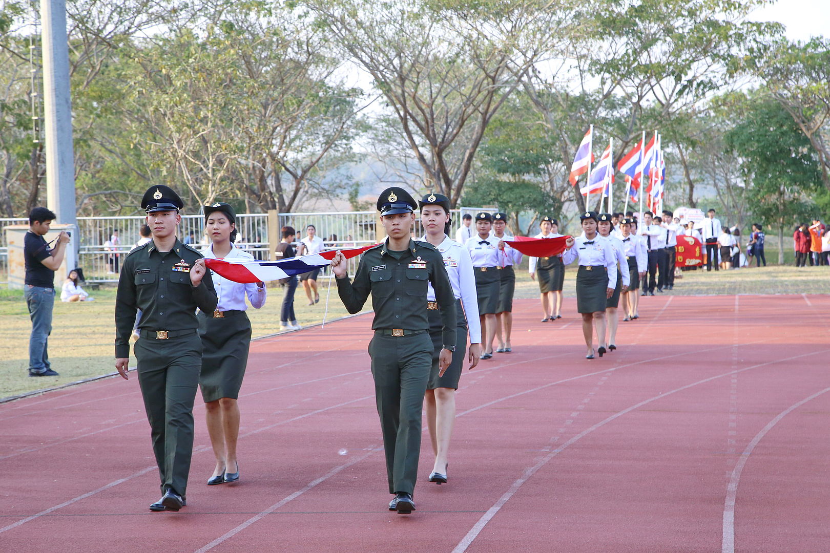 พิธีเริ่มจากชบวนพาเหรดของแต่ละสำนักวิชา การเชิญธงชาติขึ้นสู่ยอดเสา กล่าวรายงานโดยนายกองค์การบริหาร องค์การนักศึกษา และการกล่าวเปิดโดยรองอธิการบดี