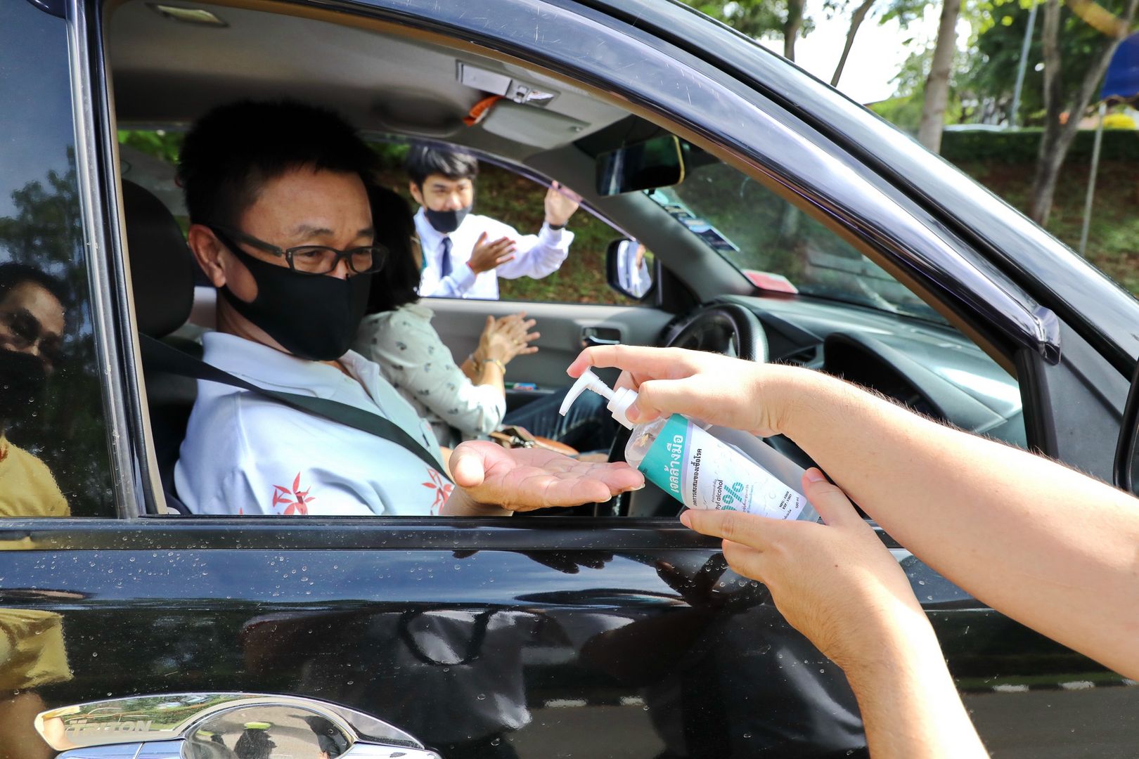 รศ.ดร.ชยาพร วัฒนศิริ อธิการบดี มฟล. ได้เดินทางมาตรวจเยี่ยมการทำงานและให้กำลังใจกับเจ้าน้าที่จากส่วนพัฒนานักศึกษา เจ้าหน้าที่โรงพยาบาลศูนย์การแพทย์ มฟล. และนักศึกษาช่วยงาน ที่ปฏิบัติหน้าที่ในจุดคัดครอง พร้อมทั้งมีโอกาสได้ทักทายนักศึกษาใหม่และผู้ปกครองที่เดินทางมาส่งบุตรหลานในครั้งนี้