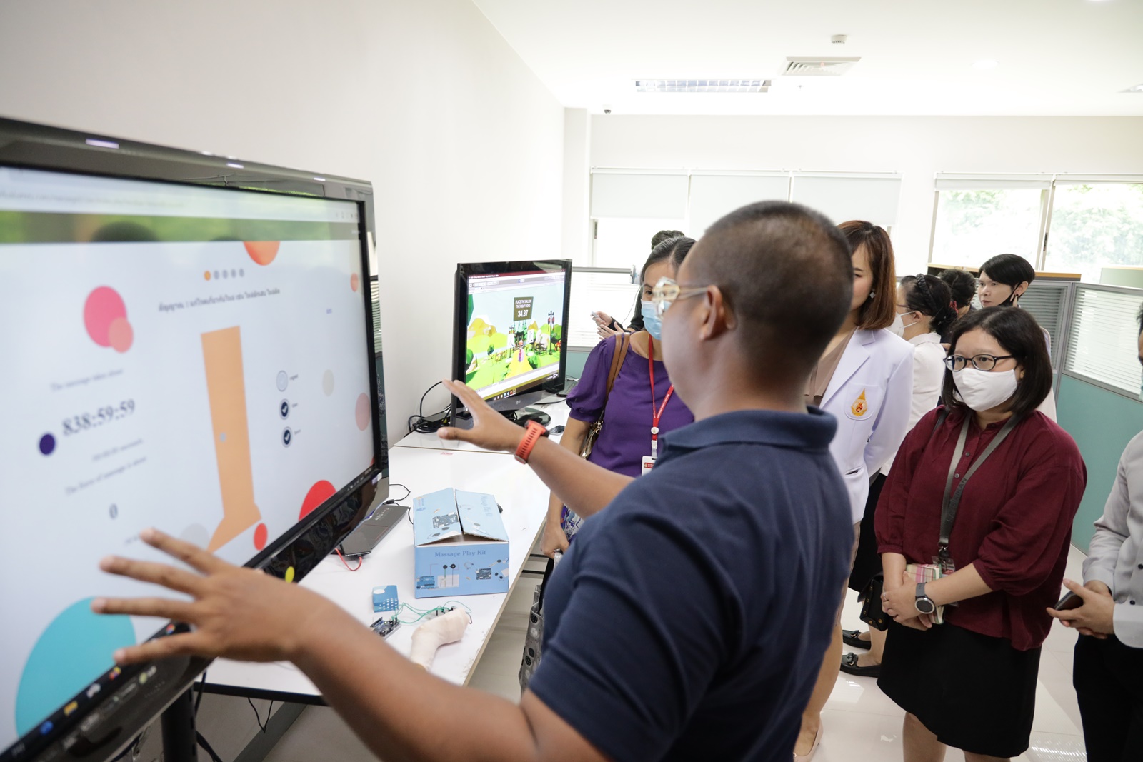 ทั้งได้มีการแนะนำและนำชมการให้บริการในส่วนต่างๆ แบ่งออกเป็น 4 ส่วน ดังนี้ 1. Pedagogy Experience และ Learning Playground 2. Creative Media Studio 3. Innovation Development  Interactive Innovation (Learning Playground, Learning Robot, Innovation Workshop, Immersive Learning) 4. Learning Studio A, Learning Studio B 5. Learning Support บริการด้านเทคนิค และ 6.  Sandbox