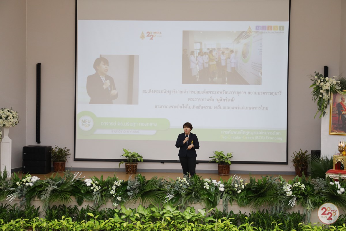 ภายในงานมีการจัด MFU Talk หัวข้อ “มฟล. กับงานวิจัยที่ค้นพบสิ่งมีชีวิตใหม่ของโลก” โดยอาจารย์ ดร.นริษฎา ทองกลาง สำนักวิชาวิทยาศาสตร์  หัวข้อ การค้นพบเห็ดหูหนูชนิดใหม่ของโลก และ นางสาววาสนา  จินะธรรม นักศึกษาปริญญาเอก สำนักวิชาวิทยาศาสตร์ หัวข้อ การค้นพบการค้นพบโปรโตซัวชนิดใหม่ และการเสวนาหัวข้อ “รู้ทันอนาคต เปิดโลก BCG (BCG for Future)” ผู้ร่วมเสวนา ผศ.ดร.อัครวิทย์ กาญจนโอภาษ CEO โครงการเมืองนวัตกรรมอาหาร (FOOD INNOPOLIS) อาจารย์ ดร.ปเนต มโนมัยวิบูลย์หัวหน้าศูนย์วิจัย Circular Economy for Waste-free Thailand (CEWT) ผู้ขับเคลื่อนโครงการ Chiang Rai Zero ดำเนินรายการโดย อาจารย์ ดร. ณัฐวุฒิ  ยอดสุวรรณ รักษาการแทนผู้อำนวยการศูนย์บริการวิชาการ มฟล.